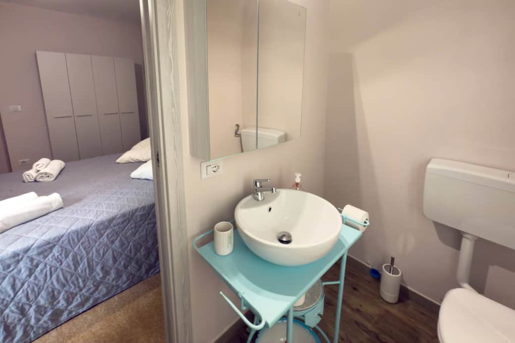 Il secondo piano ospita una seconda camera da letto, intima e luminosa, anch’essa con bagno privato.